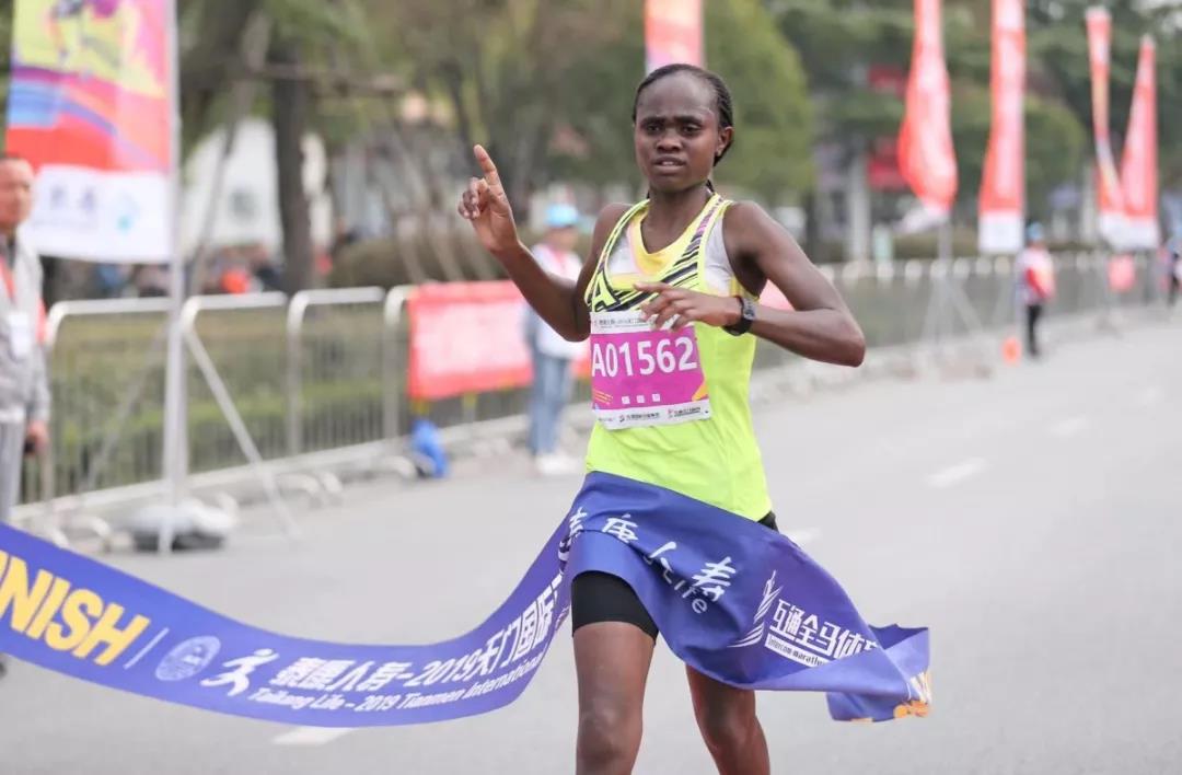 全馬女子組,來(lái)自肯尼亞的選手CHEPKURUI NANCY以2小時(shí)49分49秒的成績(jì)奪冠。